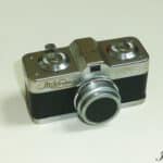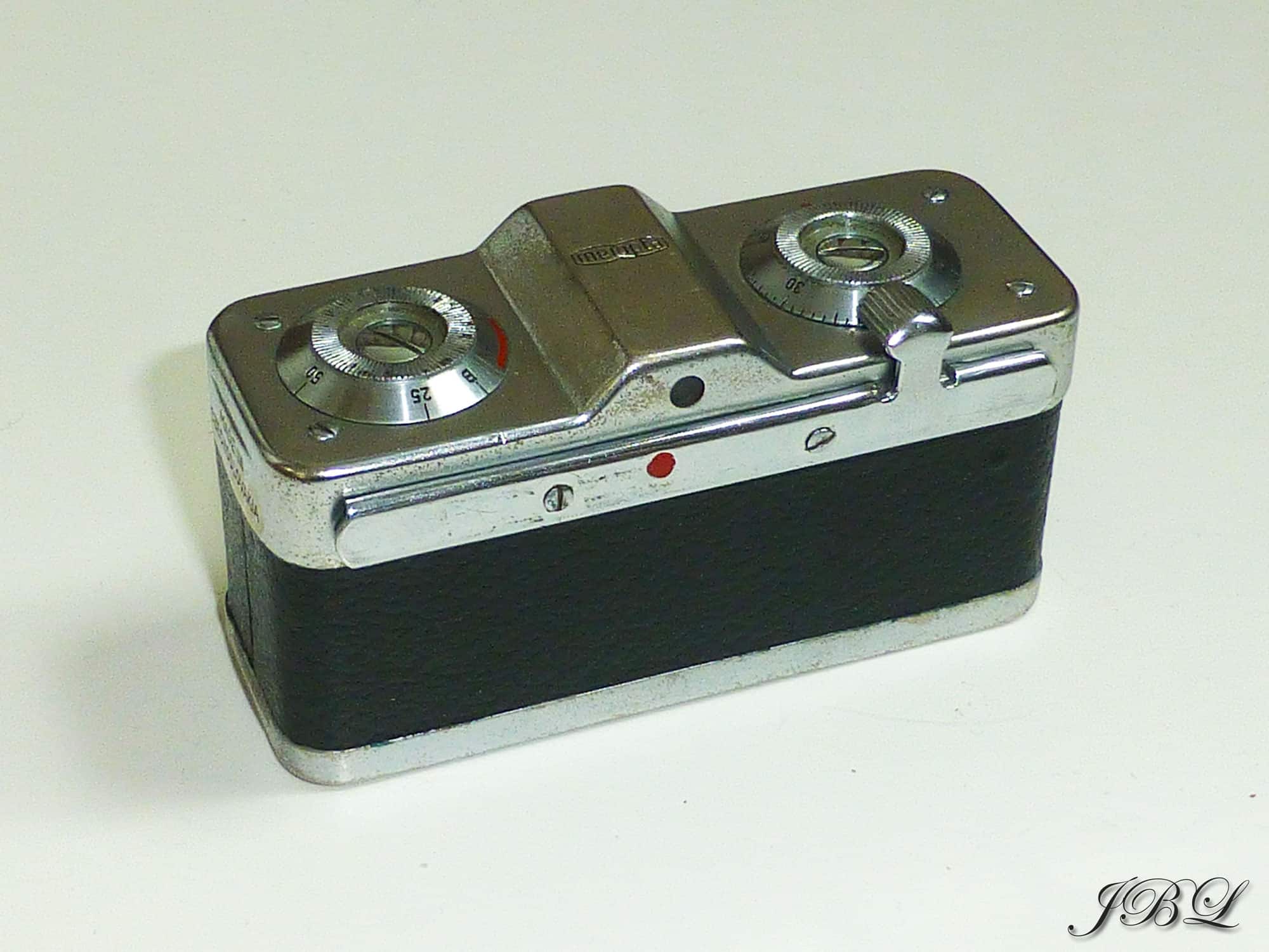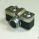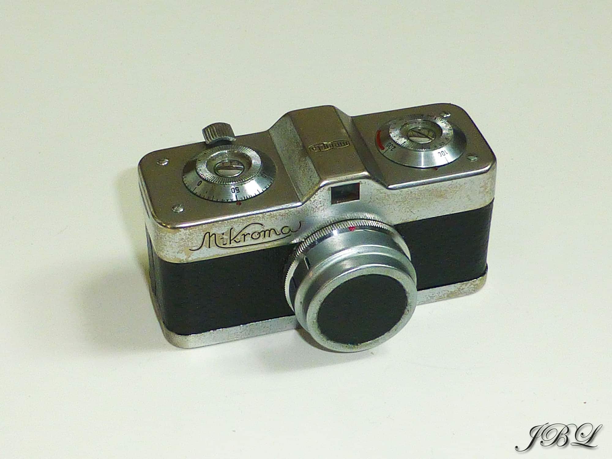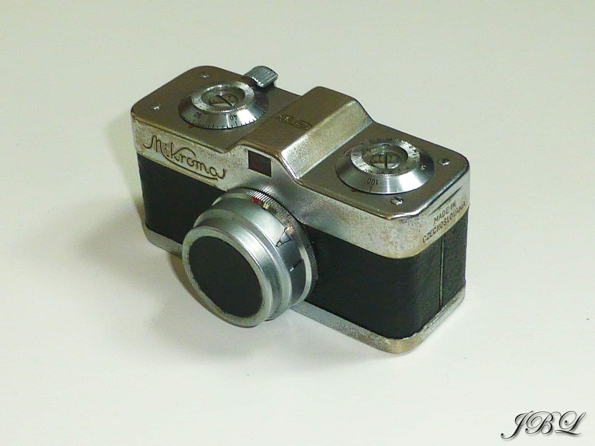 Appareil photographique ancien de collection film 16 mm, de couleur noire, objectif Mirar 3.5f20 mm, modèle Mikroma , de marque Meopta, fabriqué à partir de l’année 1949. Pays d’origine : Tchécoslovaquie.